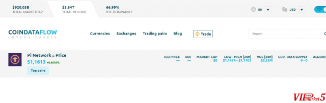 CoinDataFlow веќе ја наведе оваа валута и моменталната проценка на мрежата 1Pi = 1,16 УСД и проценката се зголемува секој ден